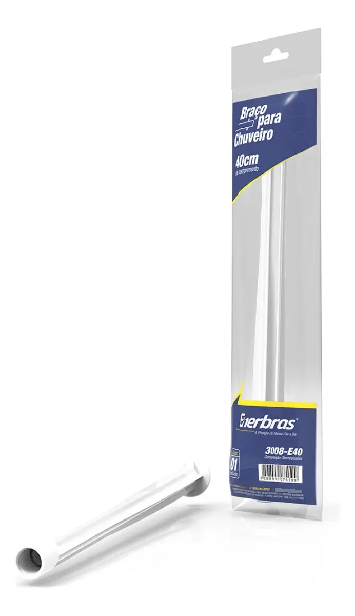 Braço para chuveiro com 40cm de comprimento, ideal para melhor posicionamento do banho. Produzido em material resistente, possui acabamento na cor branca, combinando com diversos ambientes.